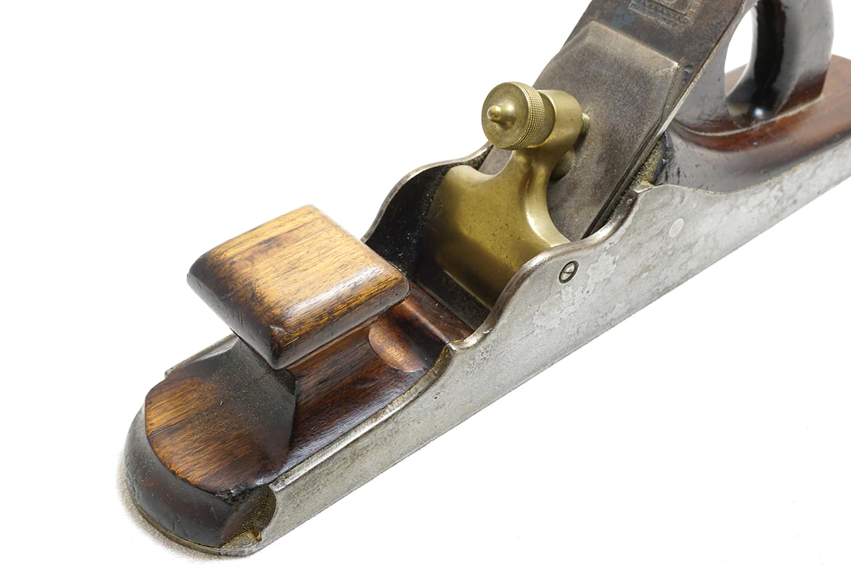 ISAAC GREAVES iron & HEARNSHAW chipbreaker. Finely shaped front bun and essentially perfect rear infill and tote. Bronze cap and knurled locking screw. "2 1/4" is cast into the back of the lever cap. Oxidized but very clean iron frame. The front bun is attached with a partially lapped screw up through the sole.