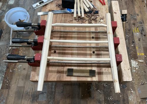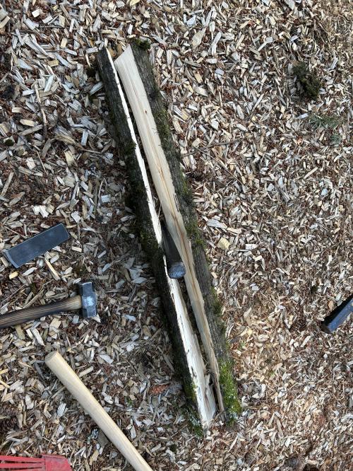 After a major ice storm in January 2024 brought down close to a dozen mature trees, mostly Douglas Fir, on our property. Fortunately our home did not get hit, but our patch of forest was devastated. I pulled a large maple branch out of the wreckage and am (slowly) working to make a chair out of it.