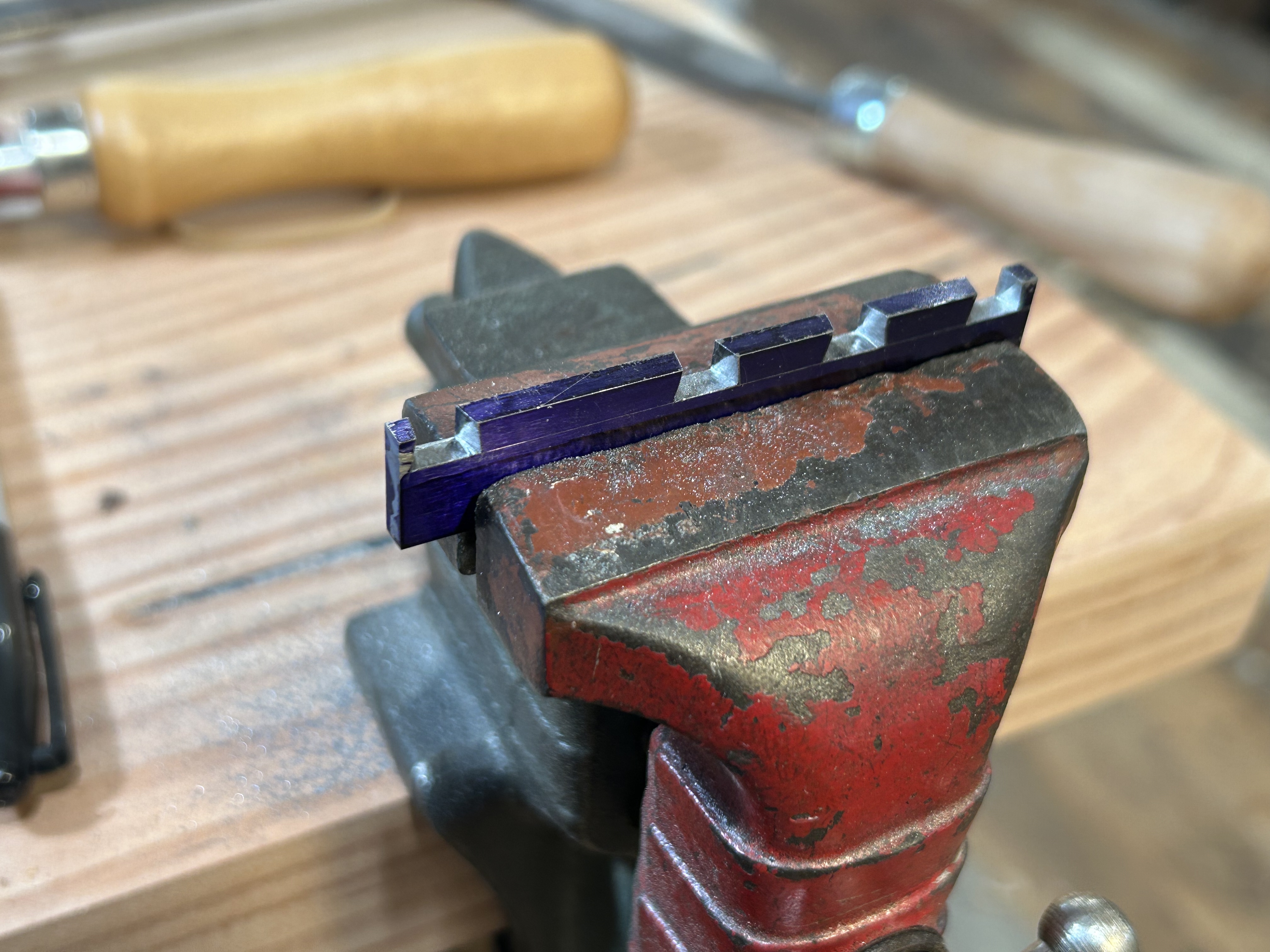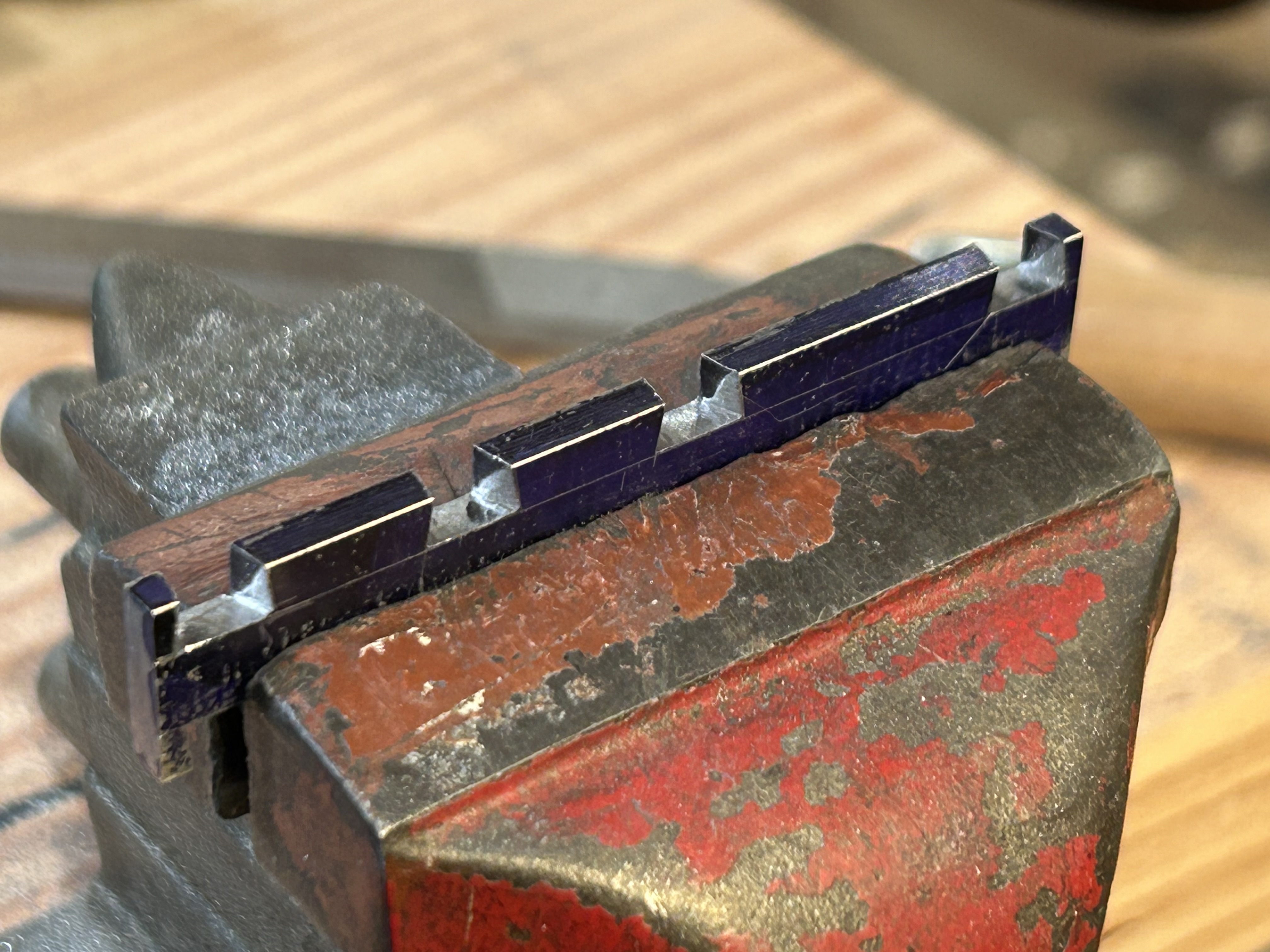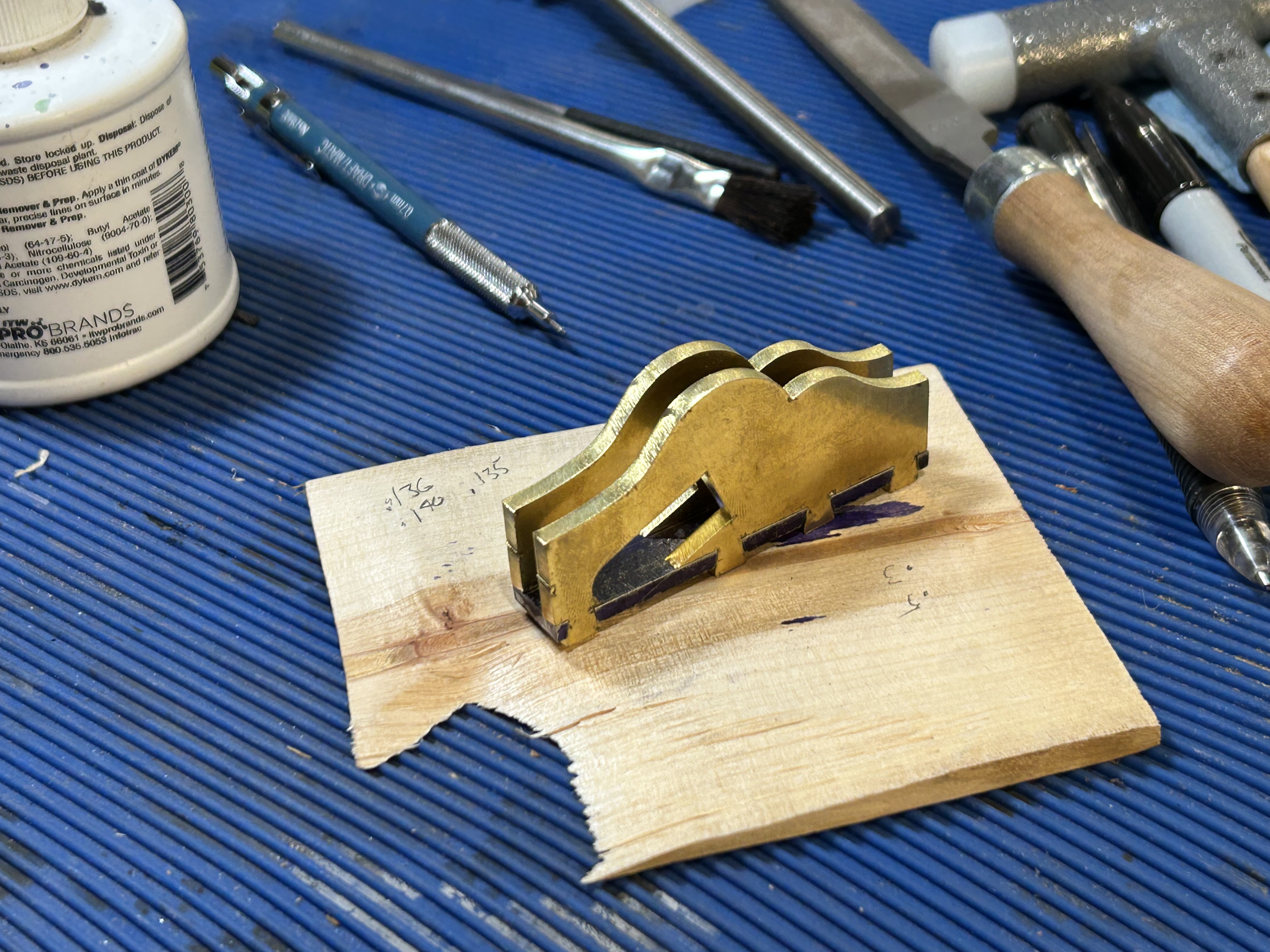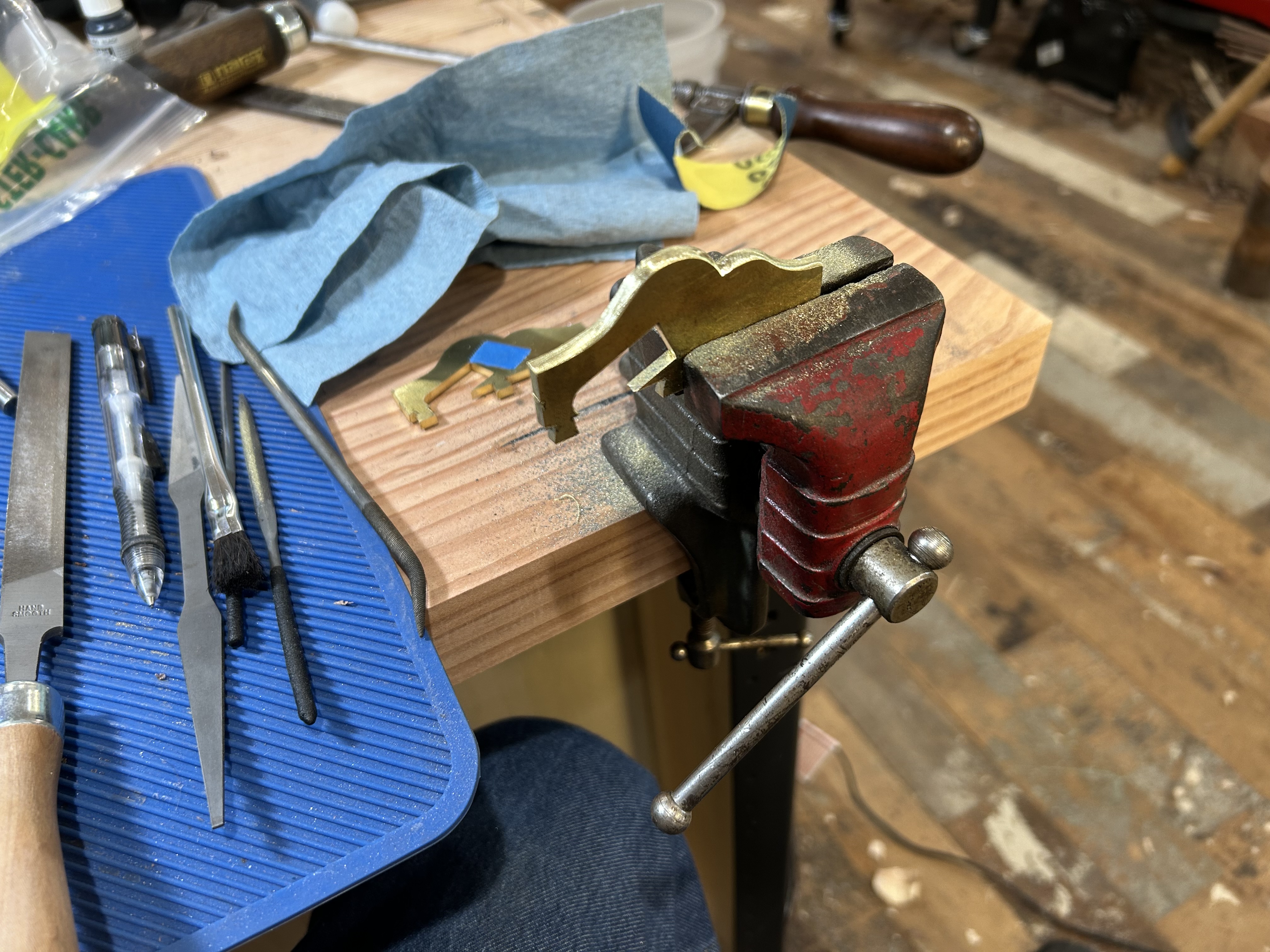 Adjusting depth on dovetail sockets. Shaping the brass for the sides.