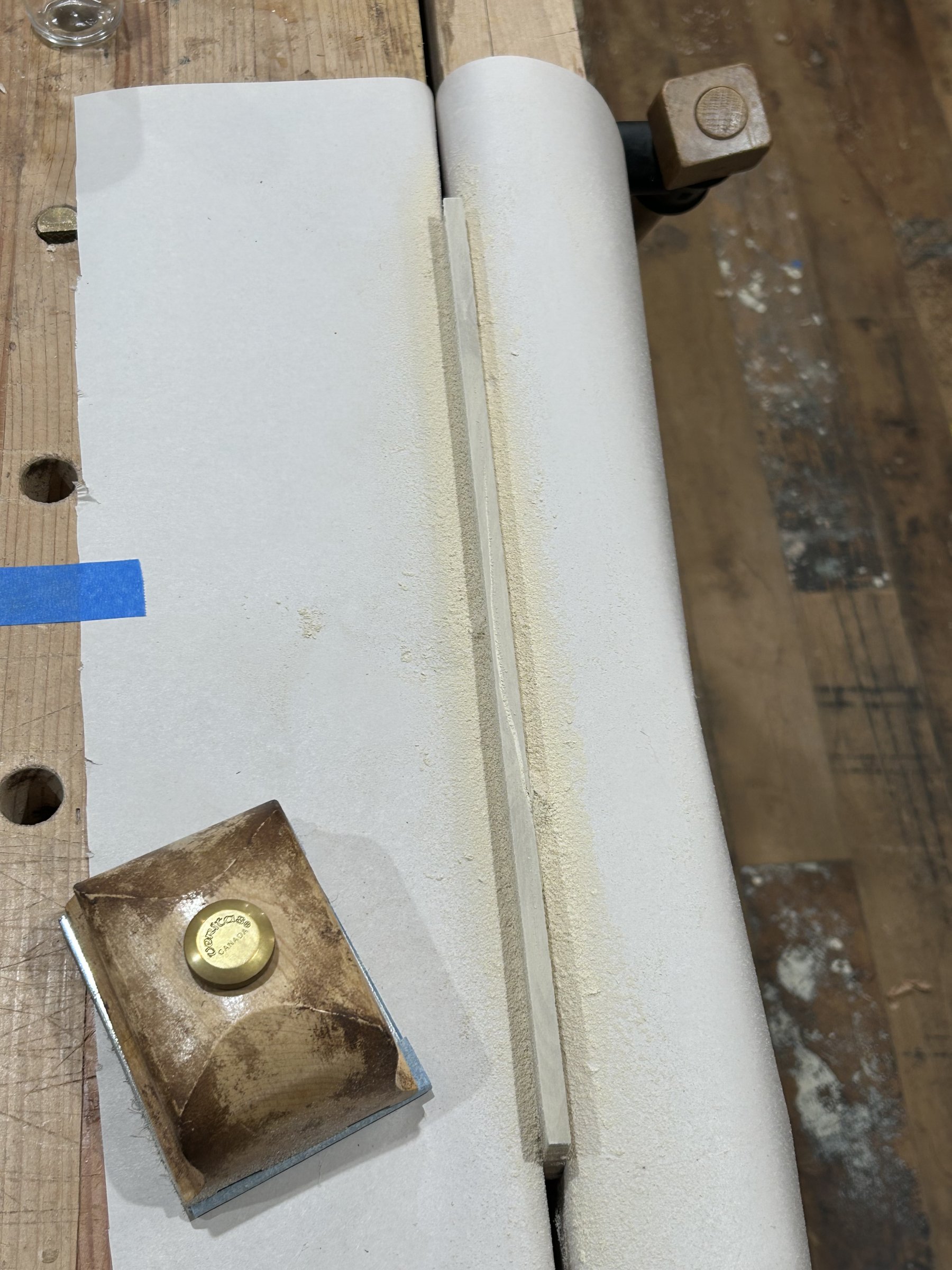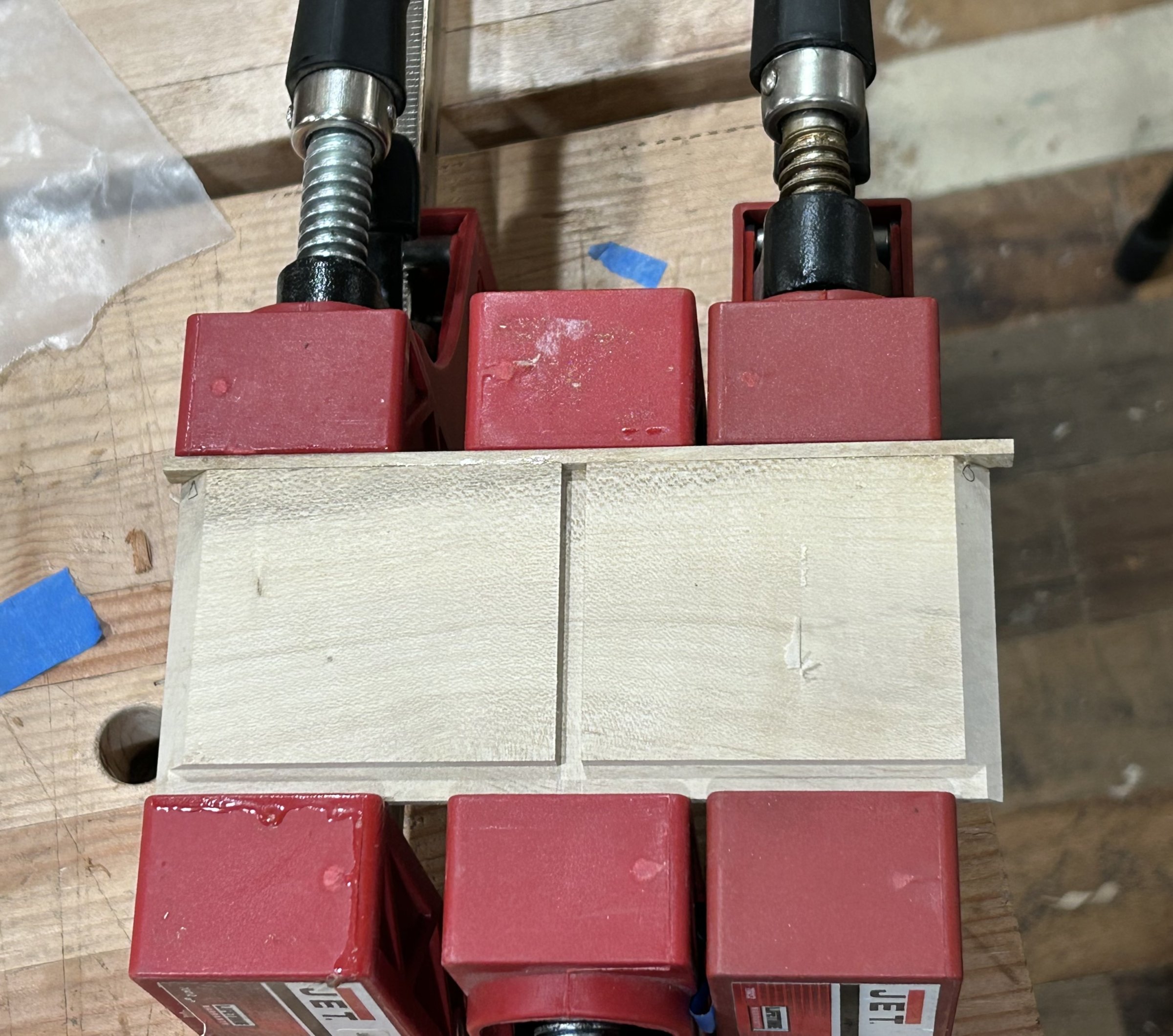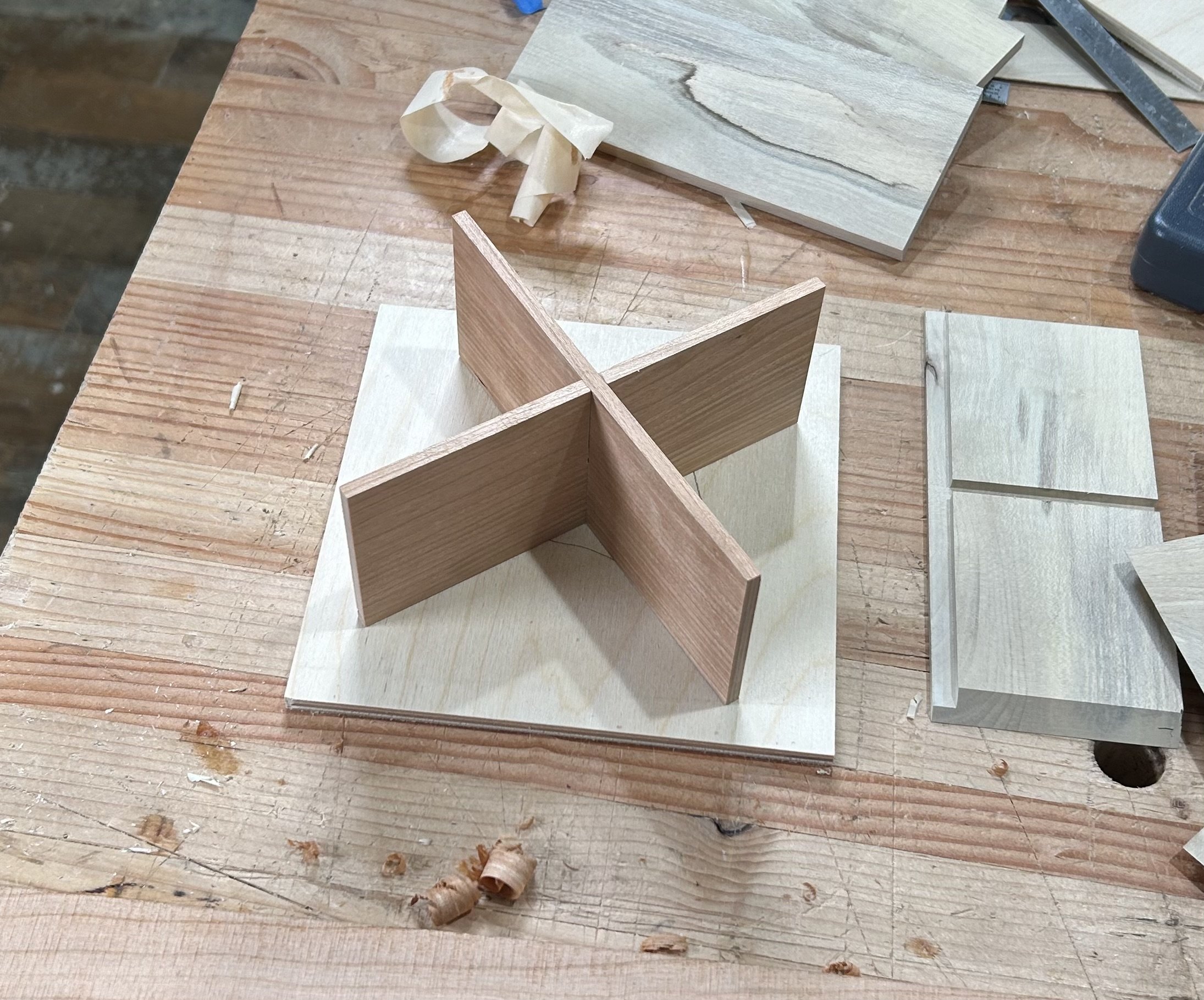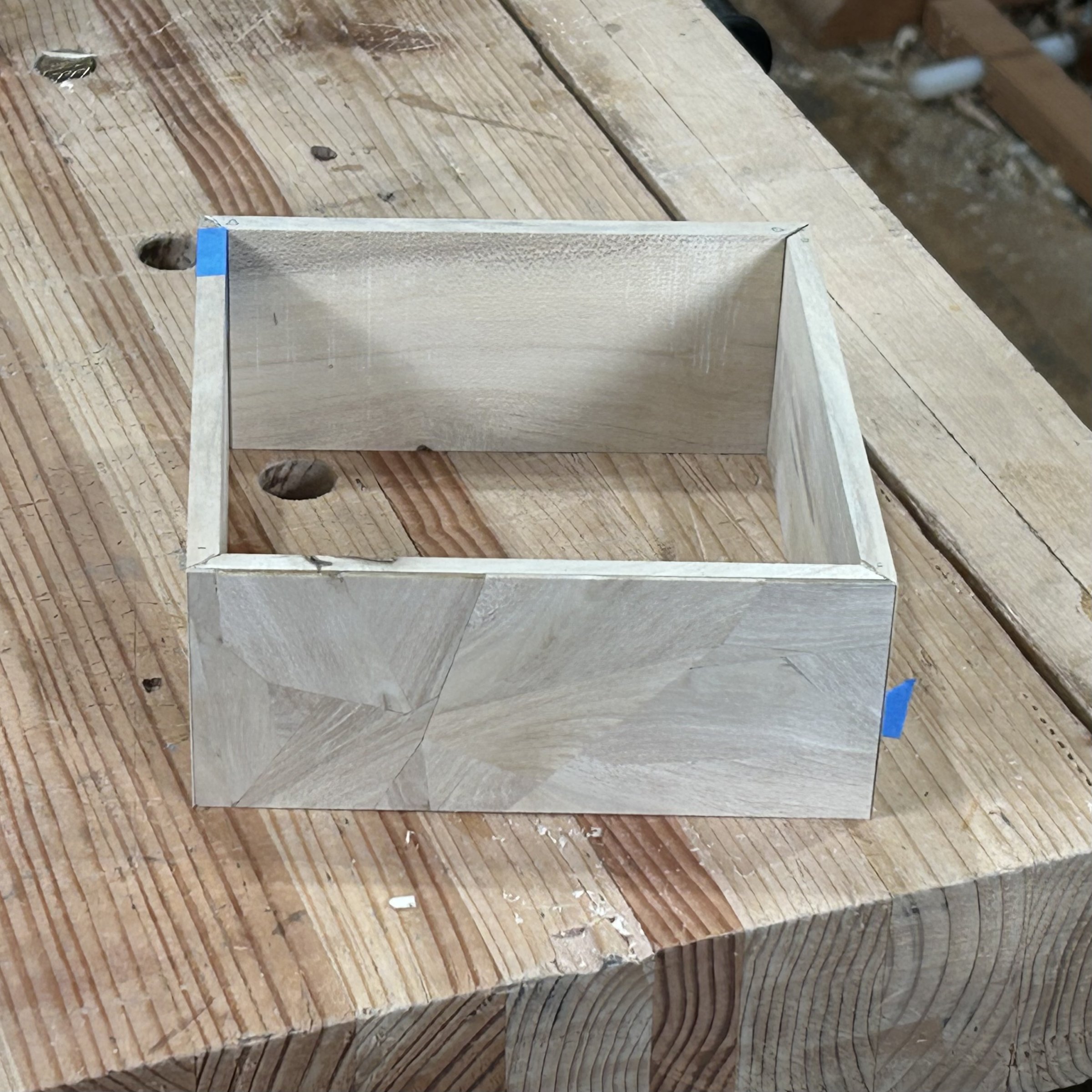 Futz with fit on miters; recut base; veneer base. I always forget how much I dislike miters.